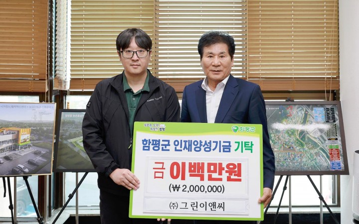 함평군은 (주)그린이앤씨가 지난 24일 함평군 인재양성기금에 200만 원을 기탁했다고 밝혔다.