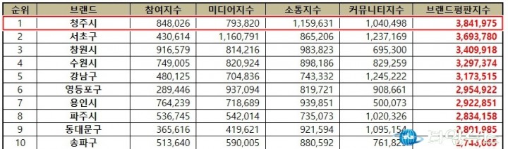청주시, 전국 기초지자체 브랜드평판 1위…소통지수 ‘최고’