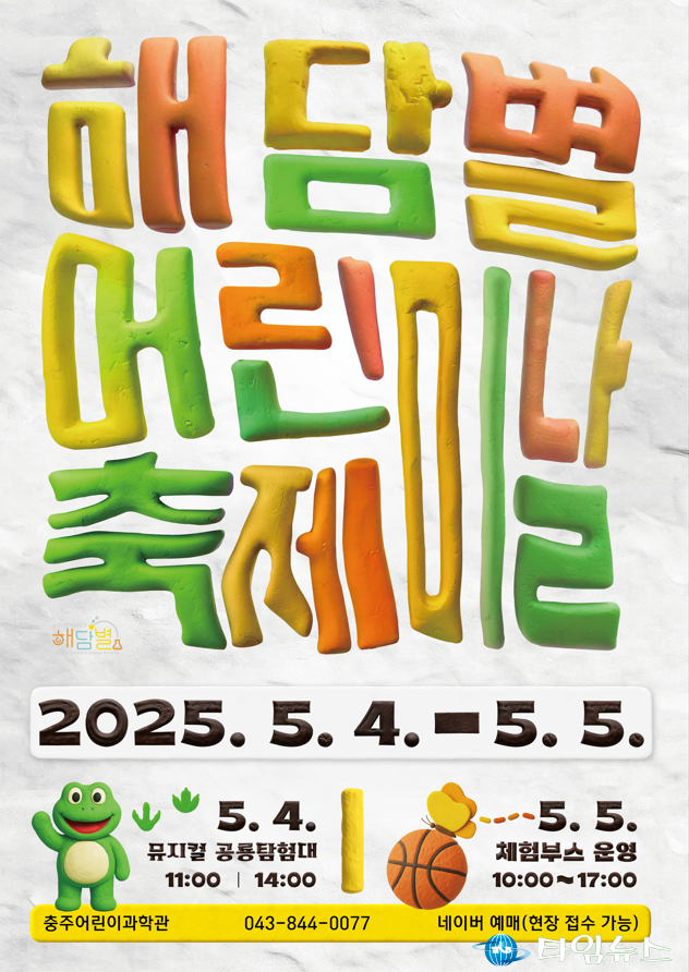[충주타임뉴스=한정순 기자] 충주시는 충주어린이과학관(관장 박병준)에서 어린이날을 기념해 5월 4일과 5일 이틀간 지역 어린이와 가족이 함께 참여할 수 있는 ‘해담별 어린이날 축제’를 개최한다고 29일 밝혔다.