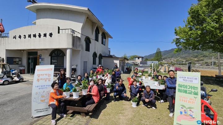 [제천타임뉴스=한정순 기자] 제천시 송학면 지역사회보장협의체(공공위원장 최경화, 민간위원장 신규상)는 지난 4월 28일부터 29일까지 이틀간 관내 시곡1리부터 시곡4리 경로당에서 어르신 140여 명을 대상으로 ‘찾아가는 원예교실’ 특화사업을 실시했다고 밝혔다.