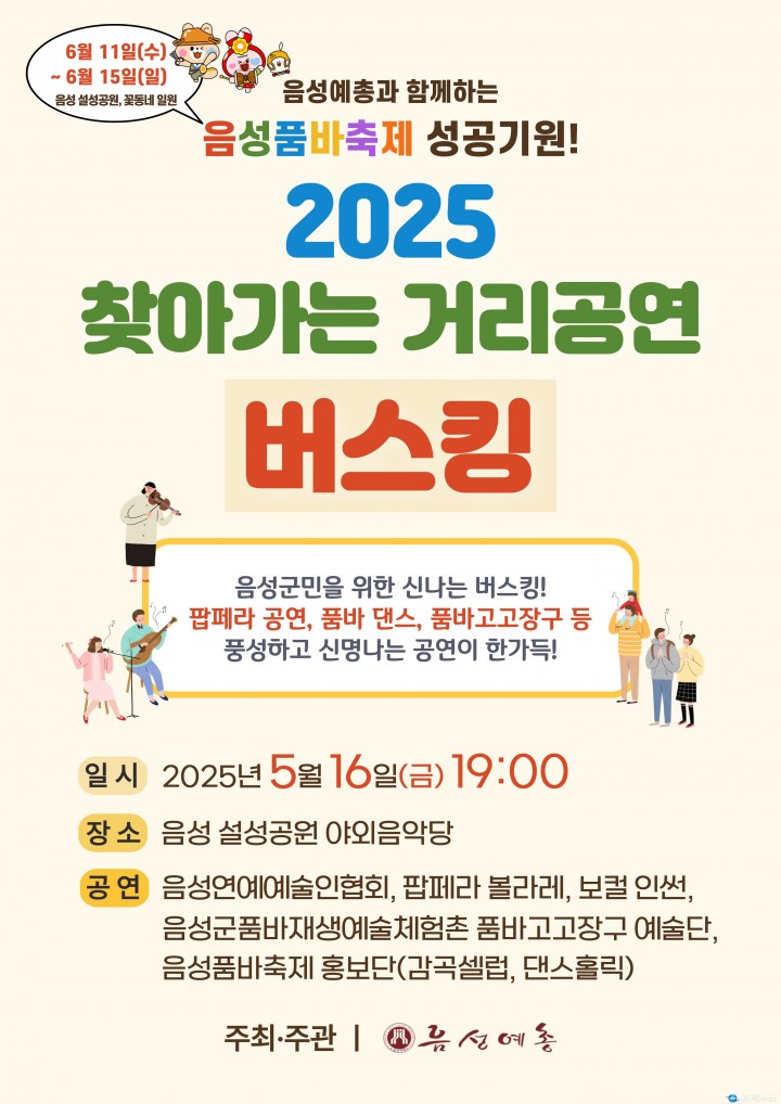 음성군, 품바축제 성공 기원 ‘찾아가는 거리공연 버스킹’ 16일 개최