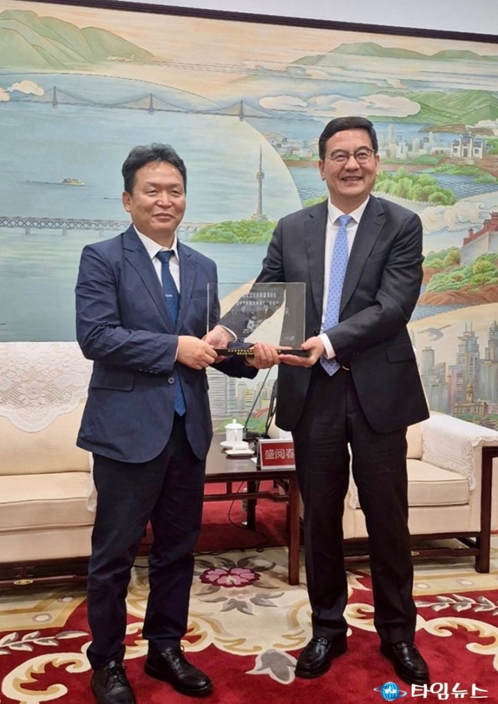 ['자매결연 25주년 기념' 중국 우한시 방문(왼쪽부터 신병대 청주부시장, 성위에춘 우한시장)]