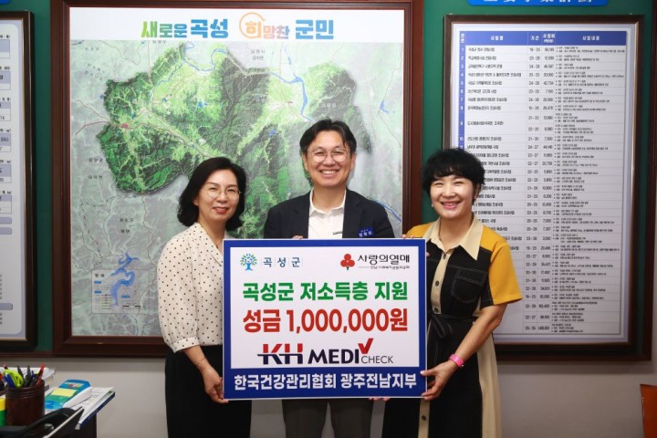 “곡성군과 공무원 종합건강검진 제휴를 맺고 매년 곡성군 공직자의 건강을 위해 노력해 주는 한국건강관리협회 광주전남지부에 깊은 감사의 말씀을 전한다. 이번에 기부해 주신 성금은 전남사회복지공동모금회를 통해 저소득가구에 소중히 전달될 것이며, 이러한 나눔이 지역사회를 더욱 따뜻하게 만들 것"이라고 덧붙였다.정창모 부군수는