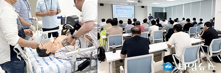 [대전타임뉴스=홍대인 기자] 충남대학교병원(병원장 조강희) 임상교육시뮬레이션센터가 지난 10일부터 11일까지 ‘2025년 취약지역 의사직 응급의료종사자 제1차 교육’을 열었다고 12일 밝혔다. 이번 교육은 보건복지부와 국립중앙의료원(중앙응급의료센터)이 주최하고 대한응급의학회가 주관했으며, 응급의료 취약지역에서 근무하는 의사직 응급의료 종사자 120명을 대상으로 3차례에 걸쳐 진행된다. 차수별 40명씩 참여하며, 연령과 임상경력을 아우르는 다양한 의료인이 참여했다. 교육은 1박 2일 과정으로 구성됐다. 첫날에는 ▲심폐소생술 최신 지견 ▲약물 중독 환자 대응 ▲응급실 초음파(POCUS) 활용 ▲심전도(EKG) 해석과 응용 ▲BLS·ACLS 실습 등 실제 응급 상황 해결을 위한 강의와 실습이 이어졌다. 둘째 날에는 ▲의료프로페셔널리즘 ▲흉부·사지·복부·뇌 영상 등 응급실 영상판독 교육을 통해 즉시 임상결정을 내릴 수 있는 능력 강화를 중점적으로 다뤘다. 교육을 총괄한 충남대병원 응급의학과 정원준 교수(대한응급의학회 교육이사)는 “이번 교육은 단순 지식 전달을 넘어 의료취약지에서 활동하는 종사자들이 역량을 점검하고 최신 지식을 공유하는 중요한 기회였다"며 “공공의료기관으로서 사회적 책임을 다하고 지역 건강증진을 위한 프로그램을 지속 운영하겠다"고 말했다.