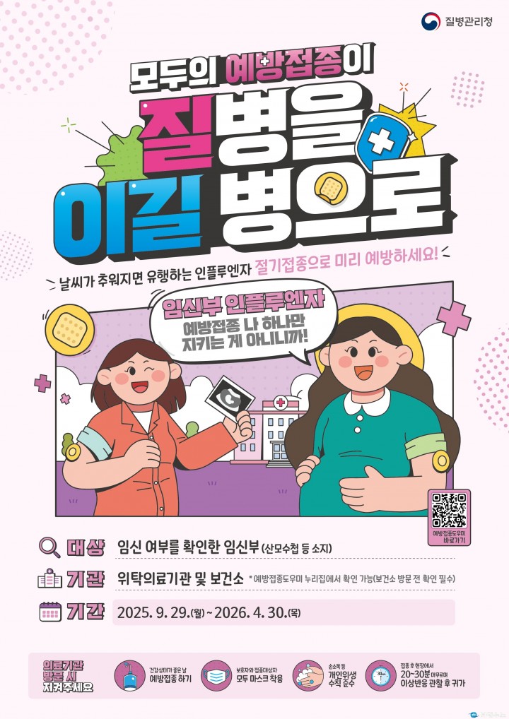 [충북타임뉴스=한정순 기자] 충북도는 오는 9월 22일부터 내년 4월 30일까지 ’25-’26절기 인플루엔자 국가예방접종을 실시한다고 밝혔다.무료 접종 대상자는 ▲생후 6개월부터 13세 어린이(2012년 1월 1일~2025년 8월 31일 출생자), ▲임신부, ▲65세 이상(1960년 12월 31일 이전 출생자) 어르신이다.