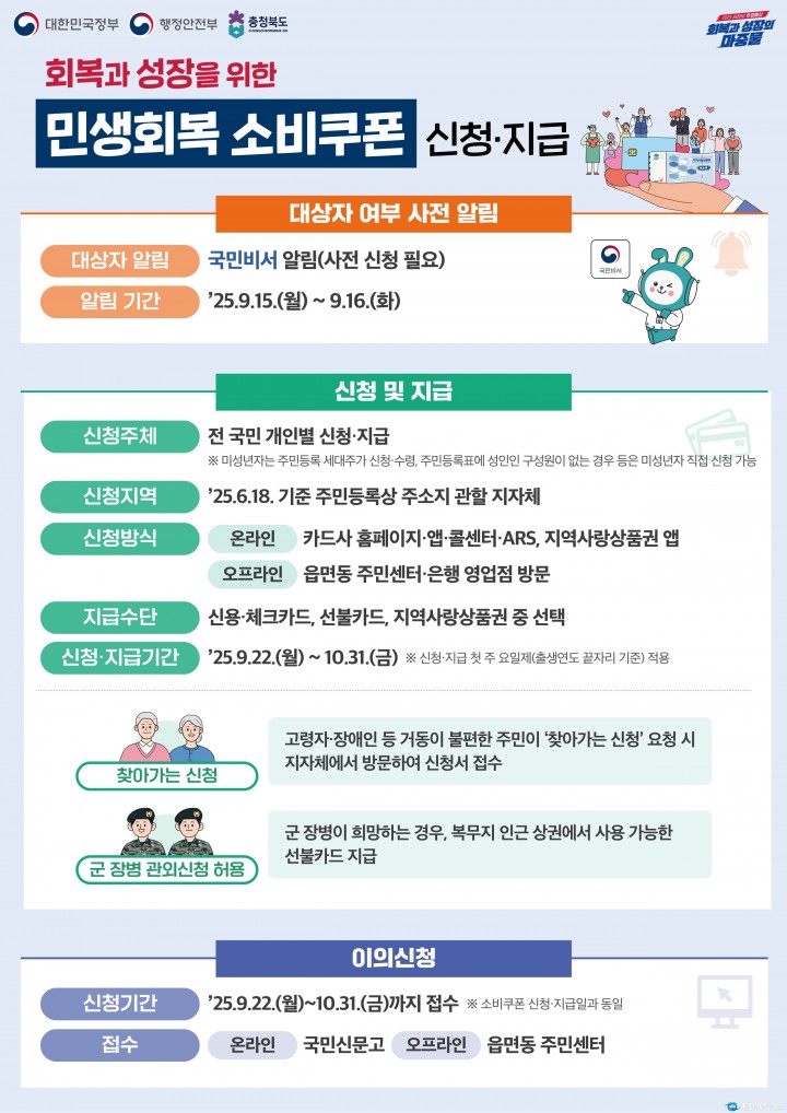 [충북도, ‘민생회복 소비쿠폰’ 2차 신청·접수 9.22일부터 개시]