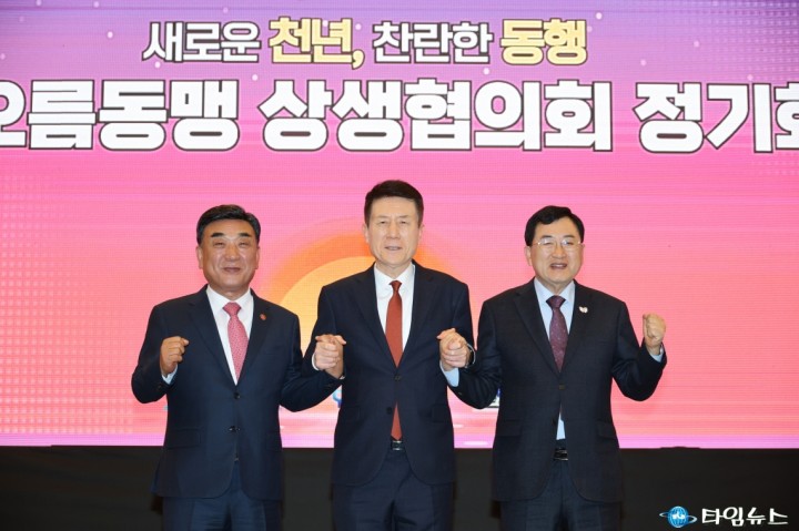 [경주타임뉴스=전찬익기자] 경주시는 24일 오후 경주 힐튼호텔에서 ‘2025년 하반기 해오름동맹 상생협의회 정기회’를 열고 공동협력사업 추진 현황과 내년도 예산 편성 방향 등을 논의했다고 밝혔다.이날 회의에는 주낙영 경주시장, 김두겸 울산시장, 이강덕 포항시장을 비롯해 3개 도시 부시장과 실·국장 등 40여 명이 참석했다.정기회에서는 △2026년 해오름동맹광역추진단 예산 편성(안) △2025년 공동협력사업 추진 현황 △한국지방행정연구원 정책연구 결과 등 3개 안건을 논의했다.먼저 해오름동맹광역추진단의 2026년도 예산 편성 방향을 협의하며, 안정적 협력체계 구축을 위한 분담금 규모와 세부 배분 방안을 조율했다.이어 경주·울산·포항이 공동 추진 중인 43개 사업의 추진 현황을 종합 점검했다.특히 문화·관광 분야에서 대형 국비사업이 잇따라 성과를 거두며 사업 추진에 탄력이 붙었다.주요 성과로는 △형산강 하천환경정비사업(8,028억 원) 예비타당성조사 통과 △영일만 복합해양레저관광도시 조성(1조 3,000억 원) △동남권 해양레저관광 거점사업(500억 원) 공모 선정 등이 꼽힌다.또한 △재난안전 공동연구 발굴단 및 미래재난 대응 협력단 운영 △광역대중교통 활성화 △물 부족 문제 공동 대응 등 현안 과제도 함께 추진되고 있다.이날 회의에서는 한국지방행정연구원의 ‘해오름동맹 협력사업 발굴 및 실행방안 정책연구’ 결과도 공유됐다.연구는 △광역단위 추진체계 정립 △중장기 협력사업 로드맵 △지속가능한 재원 확보 △민관 협력모델 구축 등 정책방향을 제시했다.주낙영 경주시장은 “해오름동맹은 3개 도시가 힘을 모아 실질적인 변화를 만들어 온 모범적 협력 모델"이라며 “앞으로도 공동 현안 해결과 미래 성장 동력 창출을 위해 더욱 긴밀하게 협력해 나가겠다"고 말했다.한편, 해오름동맹은 경주·울산·포항이 경제·산업·문화·관광 분야의 공동 발전을 위해 2016년 협약을 체결한 상생협의체다. 3개 도시는 매년 2회 정기회를 통해 지역 현안과 중장기 과제를 공유하며 협력 사업을 추진하고 있다.