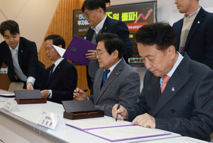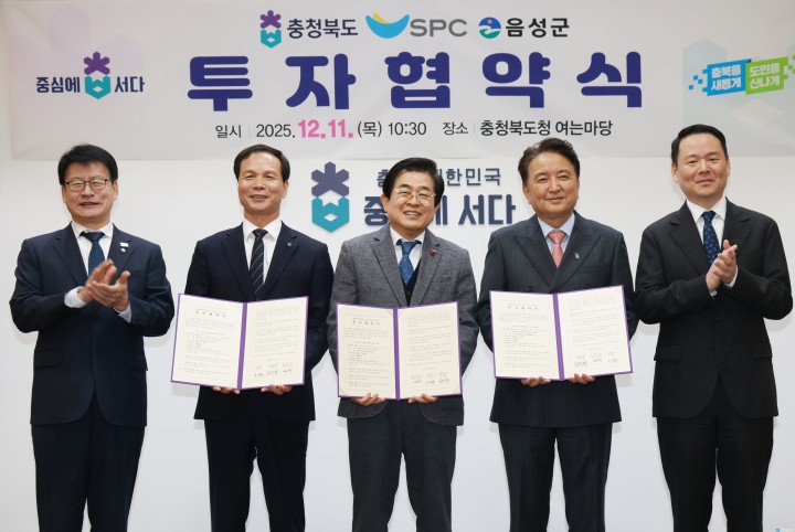 [충북타임뉴스=한정순 기자] 충청북도는 11일 도청 브리핑룸에서 음성군, SPC그룹과 함께 음성휴먼스마트밸리 내 그룹 통합생산센터 신설을 위한 대규모 투자협약을 체결했다. 이번 협약에 따라 SPC그룹은 총 3,000억 원을 투자해 2028년까지 전국 각지에 분산돼 있던 생산시설을 통합한 대형 생산 거점을 구축한다.