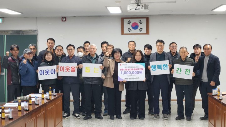 [구례타임뉴스=오현미 기자] 전남 구례군 간전면 이장단이 지역 아동과 청소년들의 건강한 성장을 응원하기 위해 따뜻한 나눔을 실천했다.간전면 이장단은 지난 24일 간전면사무에서 간전면 두드림 지역아동센터에 지정기탁으로 100만 원을 전달하며, 지역 내 돌봄이 필요한 아동 지원에 힘을 보탰다. 이번 기탁금은 방과 후 돌봄과 학습지원 및 정서 함양 프로그램 등 지역 아동센터 운영 전반에 사용될 예정이다.강정희 두드림 지역아동센터장은 “지역을 대표하는 이장단에서 보내주신 따뜻한 관심과 후원에 깊이 감사드린다"며 “기탁금은 아이들의 복지 향상을 위해 소중히 사용하겠다"고 감사의 뜻을 밝혔다.이강엽 이장단 단장은 “지역 아이들이 더욱 안전하고 따뜻한 환경에서 꿈을 키울 수 있도록 작은 보탬이 되길 바란다"며 “앞으로도 지역사회와 함께 나눔을 지속적으로 실천하겠다"고 전했다.아울러 간전면 이장단은 지역 인재 육성을 위해 총 60만원을 별도로 마련해 구례 간문초등학교와 백운장학회에 각각 전달했다. 이번 지원은 학업 여건 개선과 장학사업을 통해 지역 학생들이 학업에 전념하고 미래를 설계하는 데 도움을 주기 위한 것이다.간전면 이장단은 평소에도 지역 복지 증진과 주민 화합을 위해 다양한 봉사와 나눔 활동을 이어오고 있으며, 지역사회 전반에 나눔 문화 확산과 공동체 의식 강화에 기여하고 있다.