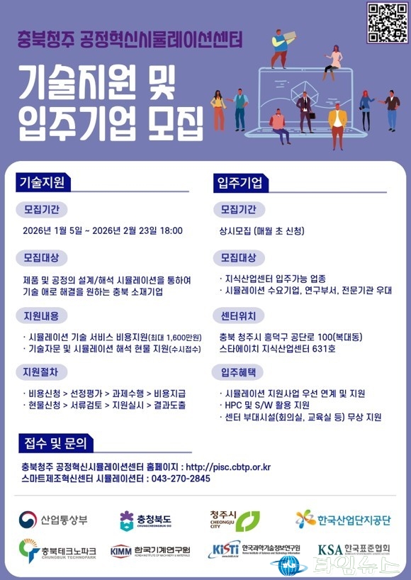 [충북타임뉴스=한정순 기자] 충청북도가 인공지능(AI) 기반 시뮬레이션 기술을 활용해 도내 제조기업의 제품 개발과 공정 혁신을 가속화한다. 충북도는 오는 2월 23일까지 도내 중소·중견 제조기업을 대상으로 ‘공정혁신 시뮬레이션 기술지원 사업’ 참여기업을 모집한다고 밝혔다.