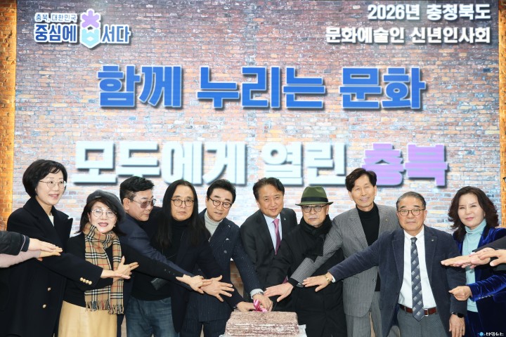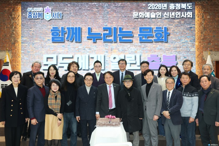 [충북타임뉴스=한정순 기자] 충청북도가 19일 도청 대회의실에서 도내 문화예술인 150여 명이 참석한 가운데 ‘2026년 충청북도 문화예술인 신년인사회’를 성황리에 개최했다. 이번 행사는 충북도 차원에서 처음 마련된 문화예술인 신년행사로, 새해를 맞아 지역 문화예술인들이 한자리에 모여 서로를 격려하고 화합을 다지는 동시에, 2026년 문화예술 정책 방향을 공유하는 뜻깊은 소통의 장이 됐다.