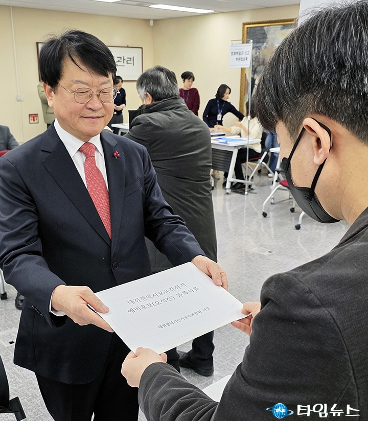 오 예비후보는 이날 오전 9시 대전선관위를 찾아 30여 명의 지지자들과 함께 「6.3 지방선거 제12대 대전교육감선거 예비후보」로 첫 공식 등록을 마쳤다.