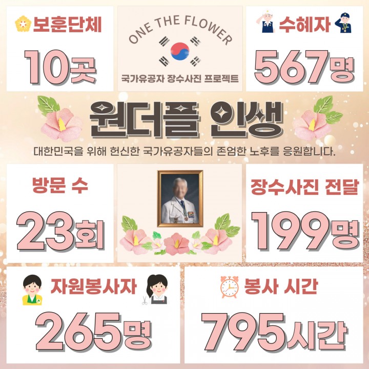 ▲9개월간 진행된 국가유공자 장수 사진 프로젝트 ‘원더플 인생’ 인포 그래픽.(사진제공=신천지 자원봉사단 광주지부)