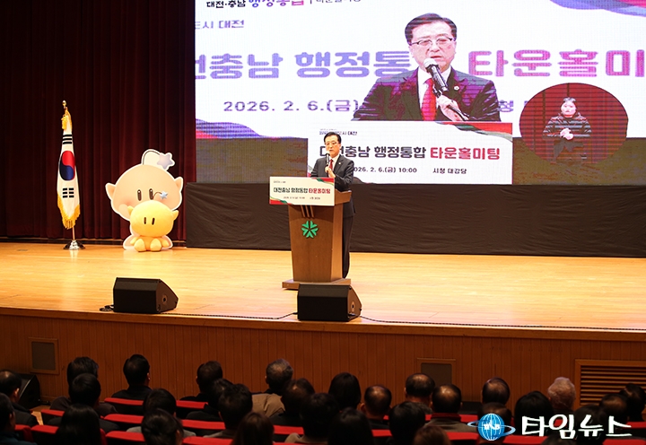 조원휘 대전시의회 의장이 6일 대전시청 대강당에서 열린 ‘대전·충남 행정통합 타운홀미팅’에서 인사말을 하고 있다