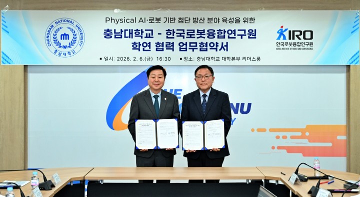 [대전타임뉴스=홍대인 기자] 충남대학교와 한국로봇융합연구원이 Physical AI와 로봇 기반 첨단 방산 인재 양성을 위해 학연 협력에 나선다. 기술과 인력, 연구 성과를 축적하는 학연 공동연구실을 구축하기 위한 협약이다.