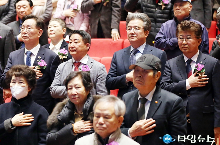 홈 / 정치 정치 김제선·서철모·정용래·최충규, 3·1절 기념식 나란히 참석 홍대인 기자 기사입력 2026-03-01 15:40:37 대전 [대전타임뉴스=홍대인 기자] 김제선 중구청장과 서철모 서구청장, 정용래 유성구청장, 최충규 대덕구청장이 3월 1일 오전 대전시청 대강당에서 열린 제107주년 3·1절 기념식에 참석해 자리를 함께하고 있다. 이날 기념식에는 독립유공자 유가족과 보훈단체, 주요 기관·단체장, 시민 등이 참석한 가운데 독립선언서 낭독과 기념공연, 만세삼창 등이 진행됐다. 이들 자치단체장은 행사 내내 단정한 표정으로 기념식에 집중하는 모습을 보였다. 홍대인 기자 <저작권자 © 타임뉴스 무단전재 및 재배포 금지> 관련 기사 허태정 대전시장 후보 “충청이 대한민국 중심 돼야”…메가시티 선언 2026.04.29 정용기 “잘못된 정치에 브레이크 걸어야” 2026.04.29 황인호 동구청장 후보, “대전역세권 공공기관 집적 추진”…동구청장 출마 2026.04.29 서지원 서구의회 의원 “여성 리더로 성장”…여성지도자상 수상 2026.04.29 서다운 대전시의원 예비후보, “유리천장 깨겠다”…여성 지도자상 수상 2026.04.29 댓글 댓글 기능은 준비 중입니다.