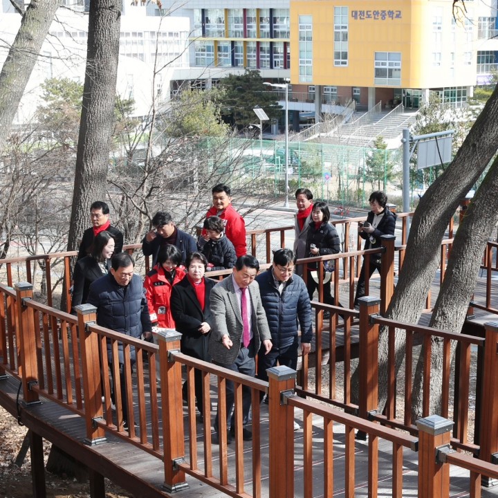 [대전타임뉴스=홍대인 기자] 대전 서구가 주민 의견을 듣기 위한 ‘우리동네, 소통투어’ 일정으로 도안동을 방문했다. 27일 서구에 따르면 서철모 청장과 구 관계자들은 최근 준공된 도안 무장애나눔길 B지구를 찾아 사업 설명을 듣고 현장을 점검했다.