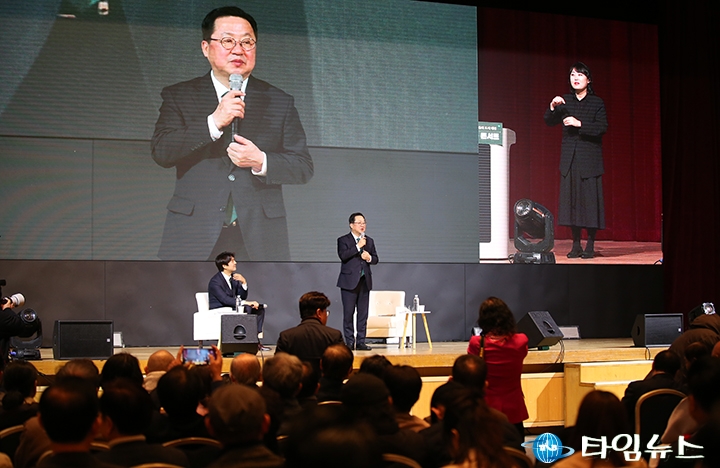 이장우 대전시장이 2일 대전컨벤션센터 제1전시장 그랜드볼룸에서 열린 저서 ‘대한민국을 바꾸는 위대한 개척자들의 도시 대전 전략과 행동’ 북콘서트에서 인사말을 하고 있다