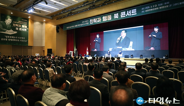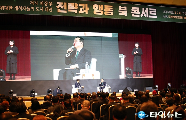 홈 / 정치 정치 이장우 대전시장 ‘전략’ 펴고 ‘행동’ 무대…북콘서트 눈길 홍대인 기자 기사입력 2026-03-02 22:47:17 대전 [대전타임뉴스=홍대인 기자] 이장우 대전시장이 2일 대전컨벤션센터 제1전시장 그랜드볼룸에서 열린 저서 ‘대한민국을 바꾸는 위대한 개척자들의 도시 대전 전략과 행동’ 북콘서트에서 책의 핵심 내용을 설명하고 있다. 홍대인 기자 <저작권자 © 타임뉴스 무단전재 및 재배포 금지> 관련 기사 전남도의회, 통합의회 출범 대비 정책지원관 역량강화 교육 실시 2026.04.29 이철우, "동해안을 해양 경제 주역으로"… 북극항로·신공항 연계 10대 공약 발표 2026.04.29 진호건 전남도의원, “농자재 가격 폭등…전남도 차원 추가 대책 마련해야” 2026.04.28 전남도의회 행정통합 TF, 통합특별시의회 출범 주요 현안 점검 2026.04.28 김진오 대전시의원, 개소식서 재선 도전 선언…‘통합 반대’ 퍼포먼스 2026.04.28 댓글 댓글 기능은 준비 중입니다.