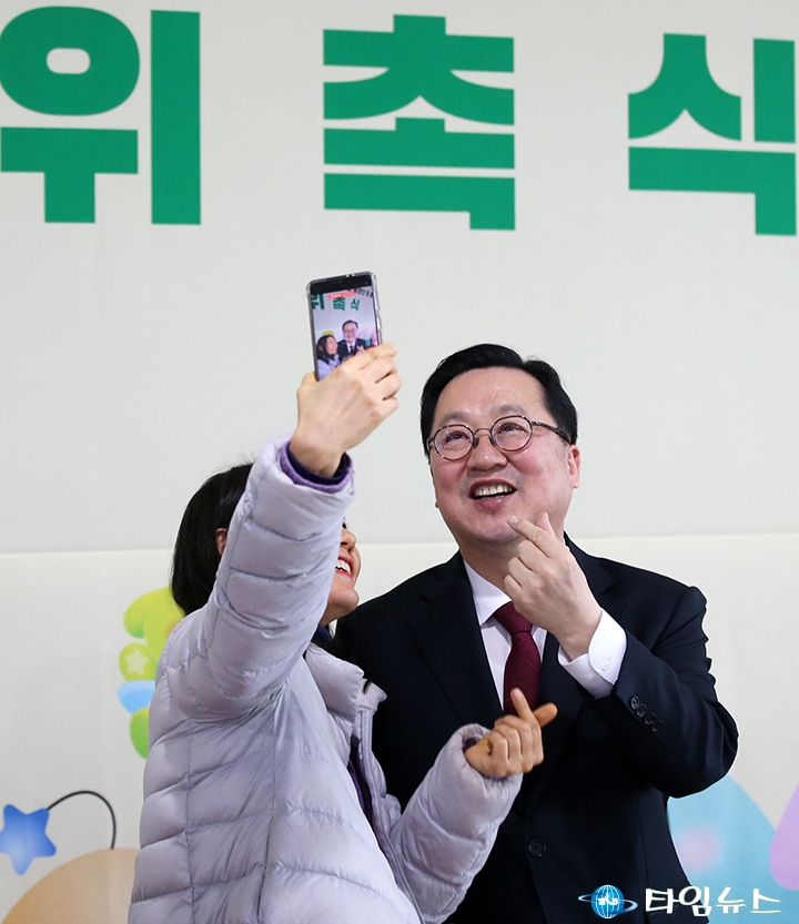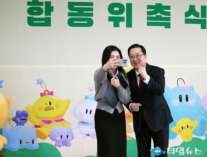 [대전타임뉴스=홍대인 기자] 이장우 대전시장이 3일 시청 대강당에서 열린 ‘2026년 소셜미디어 기자단·글로벌 서포터즈·대학생 홍보단 및 홍보대사 합동 위촉식’에서 참석자들과 함께 셀카를 촬영하고 있다. 이날 위촉식에는 홍보대사와 소셜미디어 기자단, 글로벌 서포터즈, 대학생 홍보단 등 약 200여 명이 참석했다. 시는 총 347명을 시정 홍보 네트워크 참여자로 위촉했다. 이 시장은 참석자들과 휴대전화를 들어 올려 셀카를 촬영하며 현장 분위기를 이끌었다. 위촉된 참여자들은 앞으로 대전의 주요 시정 소식과 도시 매력을 국내외에 알리는 역할을 맡는다.
