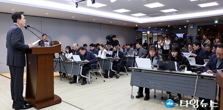 [충남타임뉴스=홍대인 기자] 김태흠 충남도지사가 “시간에 쫓긴 졸속 행정통합은 안 된다"며 재정과 권한 이양을 포함한 새로운 통합법안을 마련할 것을 이재명 대통령에게 촉구했다. 김 지사는 4일 충남도청 프레스센터에서 기자회견을 열고 “어제 2월 임시국회가 끝나면서 대전·충남 행정통합은 사실상 어려워졌고 대구·경북도 제외됐다"며 “그동안 대구·경북은 추진하면서 대전·충남만 빠지면 좋은 기회를 놓친다고 압박했지만 애초에 광주·전남만 통과시키려 했던 것 아닌가 생각한다"고 말했다. 이어 “시간에 쫓겨 졸속으로 통합을 추진하는 것은 바람직하지 않다"며 “통합 속도가 늦어지더라도 재정과 권한 이양이 포함된 통합법안을 만들어 2~4년 후 시행하는 것이 맞다"고 강조했다.