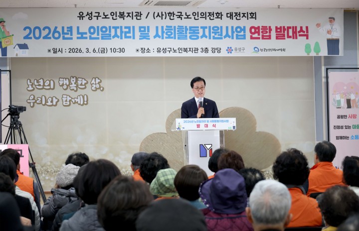 [대전타임뉴스=홍대인 기자] 대전 유성지역 노인일자리 사업에 총 777명의 어르신이 참여한다. 사업에는 약 43억 7천만 원의 예산이 투입돼 공익활동형과 역량활용형 등 다양한 유형의 일자리가 운영될 예정이다. 조원휘 대전시의회 의장은 6일 유성구노인복지관에서 열린 노인일자리 발대식에 참석해 어르신들의 활기찬 사회참여 활동을 격려했다. 이날 행사에는 유성구청 관계자와 지역 유관기관 담당자 등이 참석했다. 현장에는 어르신 120명이 참여했고, 유튜브를 통한 비대면 참여 500명을 포함해 총 620여 명이 함께했다. 조 의장은 축사에서 “어르신들이 지역사회에서 역할을 이어가는 것은 개인의 삶의 질을 높이는 동시에 공동체를 더욱 건강하게 만드는 일"이라고 말했다. 이어 “노인일자리 사업이 단순한 일자리를 넘어 어르신들의 자존감과 사회적 참여를 높이는 정책으로 자리 잡고 있다"며 “대전시의회도 지속적인 관심과 지원을 이어가겠다"고 밝혔다. 이번 노인일자리 사업에는 유성구노인복지관 557명, 한국노인의전화 대전지회 220명 등 총 777명이 참여한다. 총예산 약 43억 7천만 원이 투입돼 공익활동형과 역량활용형 등 다양한 유형의 일자리가 운영될 계획이다.