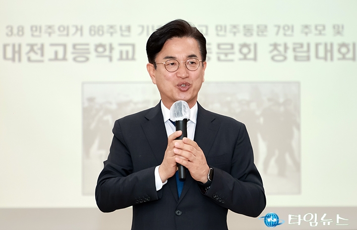 [대전타임뉴스=홍대인 기자] 허태정 더불어민주당 대전시장 예비후보는 8일 3·8민주의거 제66주년을 맞아 “3·8민주의거는 4·19혁명을 지나 1987년 6월항쟁, 오늘날까지 이어지는 대전 민주정신의 뿌리"라고 말했다. 허태정 예비후보는 이날 대전 민주화운동의 상징인 3·8민주의거기념관에서 열린 ‘작고 민주동문 7인 추모 및 대전고등학교 민주동문회 창립대회’에 참석해 이같이 밝혔다. 이번 행사는 3·8민주의거 주역인 대전고 출신 열사 7인을 추모하고 전국 고교 최초로 민주동문회를 창립하기 위해 마련됐다. 허 예비후보는 “민선 7기 시장 재임 시절 3·8민주의거가 국가기념일로 지정된 이후 기념관 착공을 직접 이끌었던 이곳에 다시 서니 감회가 남다르다"고 말했다. 이어 “준공식까지 직접 챙기지는 못했지만 대전 민주화운동의 상징이 될 이 공간에 대한 애정은 누구보다 깊다"고 밝혔다.
