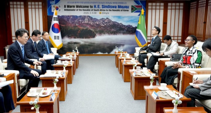 황기연 부지사는 6·25 전쟁 참전국인 남아공과 한국의 역사적 인연을 강조했다. 특히 최근 남아공이 국가적 과제로 에너지 전환과 스마트농업 도입을 추진 중인 것을 감안해 전남의 관련 우수 인프라를 소개하고 상호 보완적 파트너십 구축을 제안했다.전남도는 자원 부국이자 아프리카 핵심 경제국인 남아공과의 협력이 글로벌 사우스(Global South) 연대를 강화하는 정부 기조와도 맞닿아 있어 글로벌 외교 네트워크를 확대해 지역 신성장 동력을 확보할 계획이다.황기연 부지사는 “전남도와 남아공은 독재를 이겨내고 민주와 평화라는 보편적 가치를 피워낸 최적의 파트너"라며 “이번 만남을 계기로 신재생에너지, 첨단농업, 문화 등 다양한 분야에서 실질적이고 긴밀한 교류가 확대되길 기대한다"고 말했다.음쿠쿠 대사는 “전남의 훌륭한 산업·교육 현장을 직접 확인하면서 양측의 무한한 협력 잠재력을 실감했다"며 “내년 양국 수교 35주년을 앞두고 전남도와 남아공의 관계가 한 단계 더 높이 도약하는 계기가 되길 바란다"고 화답했다.