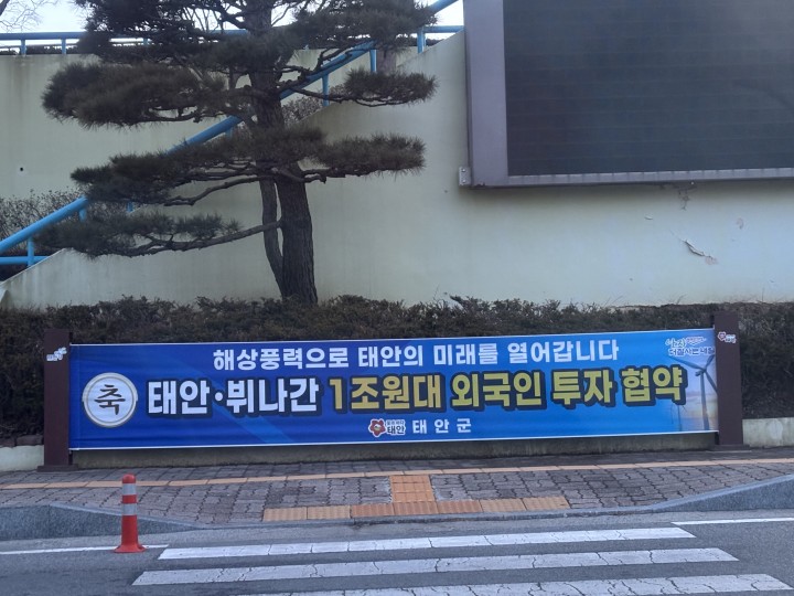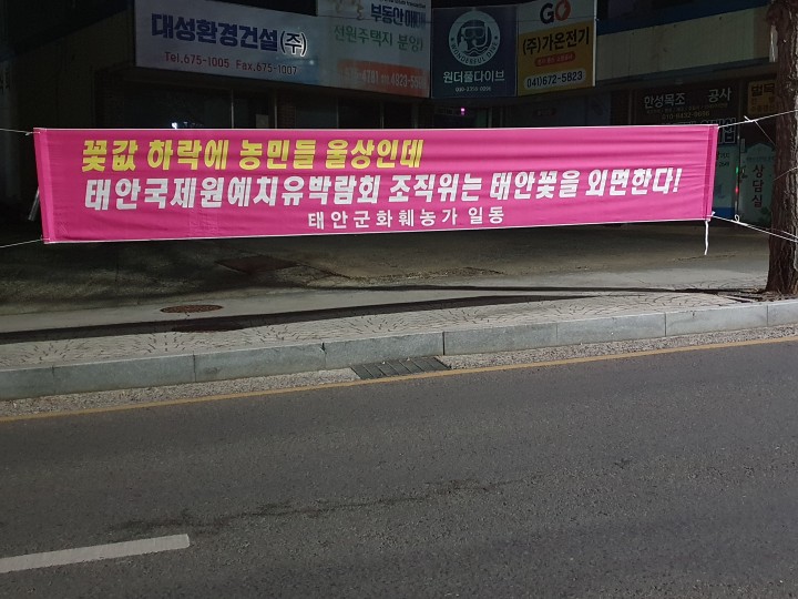 [지역업체 도외시하는 태안군국제치유발람회 조직위 규탄 현수막]