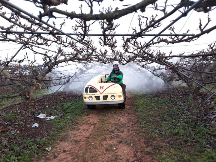 ▲개화 전 과수화상병 예방 약제 살포 현장.(사진제공=신안군)
