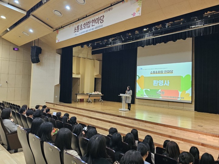 [대전타임뉴스=홍대인 기자] 대전·충남·세종어린이·사회복지급식관리지원센터영양사회는 12일 한남대학교 56주년 기념관에서 대전·충남·세종 지역 어린이·사회복지급식관리지원센터 직원들이 참여한 ‘소통&화합 한마당’ 행사를 개최했다. 이번 행사는 어린이와 노인, 장애인 등 취약계층을 위한 안전한 급식 환경 조성에 참여한 센터 종사자들의 노고를 격려하고 상호 교류를 강화하기 위해 마련됐다. 행사에는 대전광역시의회 관계자와 대전지역 식품영양학과 재학생, 대전·충남·세종 어린이·사회복지급식관리지원센터 직원 등 약 300명이 참석했다. 장종태·장철민·황정아 국회의원은 축하 영상으로 행사 개최를 축하했고, 박범계·조승래 국회의원은 축전을 통해 감사의 뜻을 전했다. 행사는 개회와 영양사 선서를 시작으로 어린이·사회복지급식관리지원센터 사업 소개, 축사, 시상식 순으로 진행됐다. 행사 전에는 센터 교육 교구 전시가 마련돼 급식관리지원센터의 사업과 교육 활동을 공유하는 시간이 이어졌다. 시상식에서는 대전광역시장상, 대전광역시의회 의장상, 장종태 국회의원상과 함께 장기근속 직원 표창이 진행됐다. 김민정 영양사회 회장은 “이번 행사가 대전·충남·세종 어린이·사회복지급식관리지원센터 직원들이 서로 소통하고 교류하는 계기가 되길 바란다"며 “앞으로도 취약계층의 건강한 급식 환경 조성과 종사자 전문성 향상을 위해 협력하겠다"고 말했다.