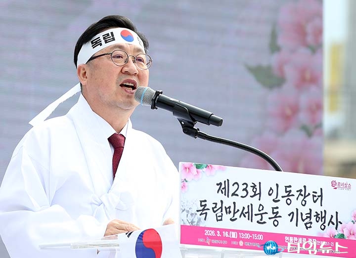 [대전타임뉴스=홍대인 기자] 이장우 대전시장은 16일 인동장터 독립만세운동 107주년 기념식에 참석해 “독립운동의 정신을 이어 더 위대한 대전을 만드는 것이 오늘을 사는 우리의 사명"이라고 밝혔다. 이장우 시장은 이날 대전 동구 인동 만세로 광장에서 열린 ‘제23회 인동장터 독립만세운동 기념행사’ 인사말에서 “107년 전 이곳 인동장터는 대한독립을 외쳤던 애국지사와 순국열사들의 혼이 서린 역사적 공간"이라며 “이곳에서 울려 퍼진 만세의 함성은 대전 독립운동사의 상징이자 오늘 우리가 누리는 자유와 번영의 뿌리"라고 말했다. 이어 “1905년 철도가 놓이면서 수백 명이 살던 한밭벌이 오늘날 145만 시민이 사는 도시로 성장했다"며 “대전은 개척자들의 도시로 어려운 역사 속에서도 끊임없이 발전해 왔다"고 강조했다. 그러면서 “일제의 침탈 속에서도 이 인동장터에서 조상들은 목숨을 걸고 독립을 외쳤다"며 “그 위대한 정신을 잊지 않고 더 강하고 더 위대한 대전을 만드는 것이 우리의 역할"이라고 말했다. 이 시장은 또 “박희조 동구청장과 함께 더 부유하고 더 강한 동구를 만들고 시민들과 함께 더 위대한 대전을 만드는 데 힘을 모아 달라"고 당부했다. 이날 행사에는 박희조 동구청장을 비롯해 장철민 국회의원, 강정규 동구의회 부의장, 오재덕 대전지방보훈청장, 보훈단체 관계자와 주민, 학생 등 약 500여 명이 참석해 인동장터 독립만세운동의 역사적 의미를 되새겼다. 기념식은 내빈 소개와 국민의례를 시작으로 3·1절 노래 합창, 기미독립선언서 낭독, 기념사와 인사말, 독립군가 합창, 만세운동 퍼포먼스, 만세삼창 순으로 진행됐다. 특히 지역 초등학생들이 참여한 플래시몹 형식의 만세운동 퍼포먼스는 당시 독립운동의 함성과 열망을 재현하며 행사 의미를 더했다. 한편 인동장터 독립만세운동은 1919년 3월 인동시장 일대에서 주민들이 중심이 돼 펼친 항일 독립운동으로, 동구는 매년 기념행사를 열어 지역 독립운동의 역사적 가치를 알리고 있다.