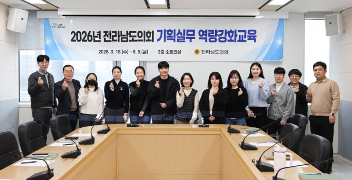 [전남타임뉴스=오현미 기자] 전남도의회가 소수정예 맞춤형 교육을 통해 직원들의 실무 문서 작성 역량 강화에 나선다. 도의회는 18일부터 6월 5일까지 의회 소회의실에서 6급 이하 직원 40여 명을 대상으로 ‘보고서·연설문 등의 작성 능력 향상 교육’을 운영한다고 밝혔다. 이번 교육의 가장 큰 특징은 교육 효과를 극대화하기 위해 기수당 인원을 6~7명으로 최소화하고 각 기수는 총 5번의 집중 교육 과정을 거치게 하는 ‘소규모 집중 실습 방식’을 채택한 점이다. 특히 교육 과정은 1회차에 개념 정립, 2회차부터 매회 다른 주제의 사전 과제를 수행하고 전문가의 1:1 밀착 첨삭을 받는 과정을 반복하며 실무 숙련도를 갖추게 설계했다. 강사로는 전남도청에서 ‘기획통’으로 정평이 난 박우육 전 국장이 오랜 현장 경험과 실전 노하우를 바탕으로 보고서의 논리 구성부터 진심을 담은 연설문 작성법까지 깊이 있게 전수한다. 김태균 의장은 “이번 교육을 통해 강화된 직원들의 실무 역량이 도민의 목소리를 정책에 담아내는 밑거름이 되길 기대한다"며, “앞으로도 의정 활동을 보다 전문적으로 뒷받침할 수 있도록 다양한 직무 교육을 지속적으로 추진하겠다"고 밝혔다.