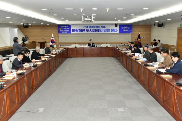[광주타임뉴스=오현미 기자] 이명노 광주시의원(더불어민주당·서구3)은 지난 17일 시의회 대회의실에서 ‘전남·광주특별시 시대, 바람직한 도시개혁의 길을 묻다’를 주제로 정책토론회를 개최했다.이번 토론회는 전남과 광주가 직면한 인구 감소와 지역 경쟁력 약화 등 구조적 위기를 극복하고, 광주·전남 상생 발전과 도시 경쟁력 강화를 위한 새로운 도시개혁 방향을 모색하기 위해 마련됐다. 특히 전남·광주 통합 논의와 광주특별시 체제 가능성 등을 포함한 지역 발전 전략을 시민사회와 함께 논의하는 자리로 추진됐다.이날 토론회는 이명노 의원이 좌장을 맡아 진행됐으며, 이민원 전남광주도시개혁시민연합 창립 추진위원장이 ‘전남·광주특별시 시대의 도시개혁 방향’을, 조진상 광주환경운동연합 공동의장이 ‘광주·전남 상생발전과 도시개혁 과제’를 각각 발표하고, 박홍근 공간복지생각 대표와 문승태 순천대학교 교수가 전남·광주 통합 논의와 지역 균형발전, 지방분권 강화 등 도시개혁 방향에 대해 각각 발표했다.이민원 위원장은 “지역 소멸 위기와 수도권 집중 심화 속에서 광주·전남이 공동의 발전 전략을 마련해야 한다"고 강조하며, 광주특별시 체제 논의와 광역 협력 거버넌스 구축의 필요성을 제시했다.조진상 공동의장은 “광주·전남의 지속가능한 발전을 위해 환경·도시·산업 정책을 연계한 도시개혁 전략이 필요하다"고 강조하며, 시민 참여 기반의 지역 혁신 모델을 구축해야 한다고 제안했다.박홍근 공간복지생각 대표는 “광주·전남의 지속가능한 발전을 위해 생활권 중심의 도시 정책과 지역 간 협력체계 구축이 필요하다"고 강조하며, 시민 삶의 질을 높이는 도시개혁 방향을 제시했다.문승태 순천대학교 교수는 “수도권 집중 심화와 지방소멸 위기 속에서 광주·전남의 상생 발전 전략이 필요하다"고 지적하며, “지역 균형발전과 지방분권 강화를 위한 제도적 기반 마련의 중요성"을 강조했다.이 의원은 “통합특별시는 새로운 자치단체 하나가 생기는 것을 넘어 새로운 지방자치의 모델을 만드는 장"이라며, “그런 통합특별시이기 때문에 단순히 4대 보상에 안주하거나 만족할 것이 아니라, 4대 보상과 400개 가까운 특례 조항을 도구로 어떤 도시와 앞으로 어떤 대한민국의 지방자치를 만들어 갈 것인지의 기로에 서 있는 만큼, 그 통합을 완벽하게 수행해낼 수 있도록 시민들의 의견이 잘 담겨야 한다"고 말했다.