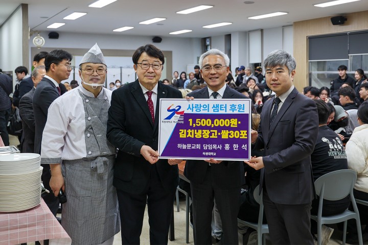 [대전타임뉴스=홍대인 기자] 목원대학교는 외국인 유학생의 학업과 생활 적응을 돕기 위해 식사 지원 프로그램 ‘사랑의 샘터’를 운영하고 있다고 19일 밝혔다. 이번 학기 첫 점심 나눔은 18일 정오 대학 채플 카페테리아에서 진행됐다. 프로그램은 매 학기 주 1회 점심시간에 운영되며 유학생의 생활 안정과 공동체 형성을 지원하기 위해 마련됐다. 사랑의 샘터는 2006년 고 김성엽 교수가 시작했으며 이후 유병부 교수가 운영을 이어받아 21년째 이어지고 있다. 유 교수는 한식조리사 자격을 취득해 직접 조리에 참여하고 있다. 제공 음식은 한식을 기본으로 베트남 등 유학생 출신 국가의 음식도 함께 제공된다. 재료비는 지역 교회를 중심으로 한 후원으로 마련되고 있다. 이날 행사에서는 하늘문교회가 김치냉장고 3대와 쌀 30포, 후원금 150만 원을 기탁했고, 여두홍 장로는 바게트 300개를 전달했다. 해당 빵은 대전 유성구 소재 제과제빵 기업 하랑커뮤니티에서 생산됐다. 이희학 총장은 “유학생들의 생활 적응과 정서적 안정을 돕는 데 중요한 역할을 하고 있다"며 “글로벌 캠퍼스 환경 조성을 위해 지원을 이어가겠다"고 말했다.
