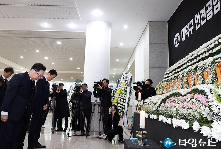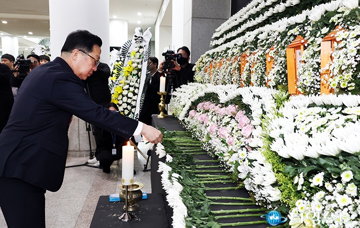 홈 / 정치 정치 문평동 화재 분향소 찾아 참배하는 이장우 대전시장 홍대인 기자 기사입력 2026-03-22 18:47:10 대전 [대전타임뉴스=홍대인 기자] 이장우 대전시장이 22일 오전 9시 50분경 대전시청 1층 문평동 화재 사고 희생자 합동분향소를 찾아 참배하고 있다. 대전시는 4월 4일까지 14일간 분향소를 운영하며 시민 추모를 지원한다. 홍대인 기자 <저작권자 © 타임뉴스 무단전재 및 재배포 금지> 관련 기사 김진오 대전시의원, 개소식서 재선 도전 선언…‘통합 반대’ 퍼포먼스 2026.04.28 권선택 전 대전시장, 이장우 “권위·불통”…허태정 재도전 필요 2026.04.28 이재명 대통령 “해외 은닉 자산 환수는 조세 정의의 핵심”… 임광현 청장 행보 격려 2026.04.28 김민숙 대전시의회 의원, 소아당뇨 조례 공로…당뇨의정대상 수상 2026.04.27 국민의힘 대전시당, 추가 공모 결과 유성 2곳 공천 확정 2026.04.27 댓글 댓글 기능은 준비 중입니다.