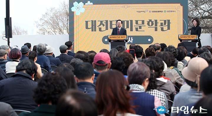 대전문화재단은 이날 테미공원 인근 옛 테미도서관을 리모델링한 복합문화공간 ‘대전테미문학관’을 개관했다. 문학관은 연면적 1,300㎡, 지하 1층·지상 3층 규모로 조성됐으며 전시실, 세미나실, 문학콘서트홀 등을 갖췄다. 개관식에는 이장우 대전시장과 김제선 중구청장, 백춘희 대전문화재단 대표이사, 지역 문인 등 300여 명이 참석해 기념행사와 제막식이 진행됐다.