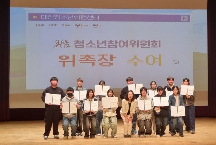 [대전타임뉴스=홍대인 기자] 대전 동구가 청소년 14명으로 구성된 ‘제8기 청소년참여위원회’를 출범시키고 정책 참여 확대에 나섰다. 동구는 28일 대전청소년위캔센터에서 위촉식을 열고 공개모집으로 선발된 청소년에게 위촉장을 수여했다. 청소년참여위원회는 청소년기본법에 따라 정책 수립과 시행 과정에 청소년이 참여하는 법적 기구다. 동구에 거주하거나 지역 학교와 기관 등에 소속된 9세 이상 24세 이하 청소년으로 구성된다. 위원회는 청소년정책 모니터링과 정책 아이디어 발굴, 간담회와 캠페인, 정책 실천 프로젝트 등을 추진할 계획이다. 박희조 동구청장은 청소년의 의견이 실제 정책으로 이어질 수 있도록 참여 기반을 확대하겠다고 밝혔다.