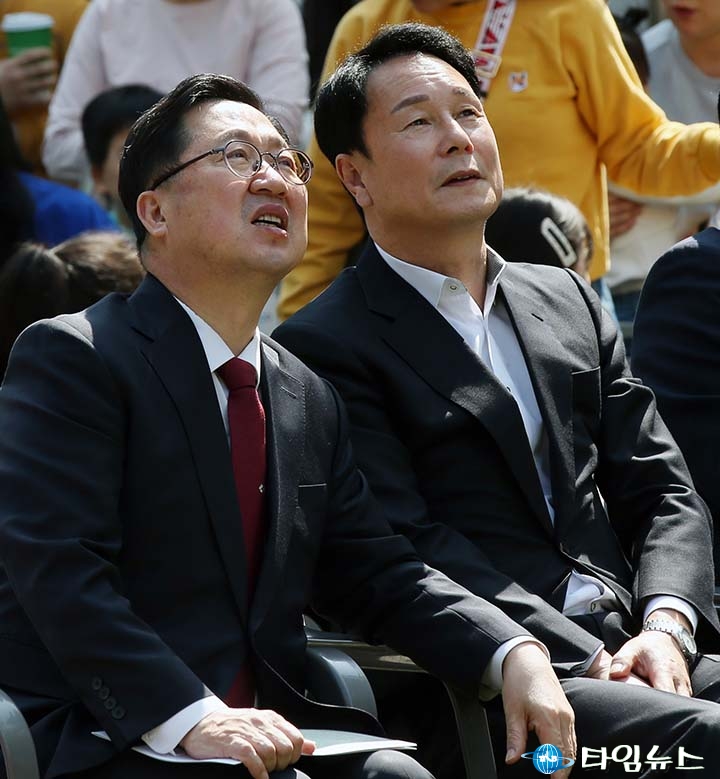 [대전타임뉴스=홍대인 기자] 이장우 대전시장과 이상래 대전시의회 의원이 28일 대전 동구 글로벌 드림캠퍼스 개관식 현장에서 대화를 나누고 있다. 두 사람은 행사장 내 프로그램 공간을 둘러보며 교육시설 운영과 활용 방안에 대해 의견을 교환했다. 이날 개관식에는 박희조 동구청장과 오관영 동구의회 의장 등 주요 인사가 참석했으며 학부모와 어린이 등 약 500명이 현장을 찾았다. 글로벌 드림캠퍼스는 원어민 체험형 외국어 교육시설로 다음 달 6일부터 본격 운영에 들어갈 예정이다.