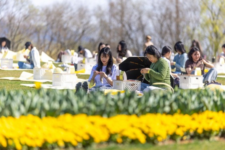 ▲순천만국가정원에서 뜨개질멍을 하고 있는 참가자들 모습.(사진제공=순천시)