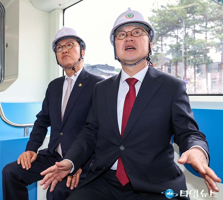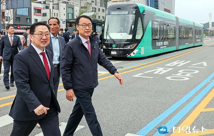 [대전타임뉴스=홍대인 기자] 이장우 대전시장이 전국 최초 3칸 굴절버스 도입을 추진하며 “교통혁명을 이루겠다"고 밝혔다. 이장우 시장은 1일 도안동 호수공원 일원에서 차량 점검을 진행하며 “대한민국 최초 신교통수단을 대전에서 시작한다"며 이같이 말했다. 이어 “230명 탑승이 가능한 3칸 무궤도 트램 방식 굴절버스를 2024년부터 기획해 왔고, 개통 전 시범운행을 시작했다"며 “대전에서 시작되는 미래형 교통혁신에 기대해 달라"고 강조했다. 이날 점검은 차량 내·외부 장치 상태를 확인하고 갑천생태호수공원부터 용반네거리까지 2.6km 구간을 왕복 주행하는 방식으로 진행됐다.