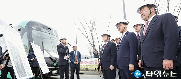 [대전타임뉴스=홍대인 기자] 조원휘 대전시의회 의장이 3칸 굴절버스 시범운행을 계기로 기존 트램 노선을 무궤도 방식으로 전환할 수 있다고 밝혔다. 조 의장은 1일 도안동 호수공원 일원에서 열린 시범운행 현장에서 “대한민국 최초로 유성에서 3칸 굴절버스, 무궤도 트램 시대가 열렸다"고 말했다. 이어 “37만 유성구민과 함께 시범운행을 환영한다"며 “호수공원에서 만년교 인근까지 시범운행을 거쳐 10월 본격 운행이 시작되면 대전 대중교통체계는 획기적인 전환을 맞게 될 것"이라고 밝혔다. 또 “직접 탑승해 보니 승차감과 안정성, 속도 모두 우수했다"며 “시범운행 이후 문제가 없다면 3·4·5호선 트램 노선도 무궤도 방식으로 변경할 필요가 있다"고 강조했다. 이날 현장에는 이장우 대전시장과 시 간부들이 참석해 차량 내·외부 장치 상태를 점검하고, 갑천생태호수공원부터 용반네거리까지 2.6km 구간 왕복 주행시험을 실시했다. 3칸 굴절버스는 최대 230명 수송이 가능한 대용량 교통수단으로 혼잡 시간대 수송 능력 개선과 교통약자 이용 편의성을 동시에 확보한 것이 특징이다. 대전시는 6월까지 도안동로 중앙버스전용차로 일부 구간에서 시험운행을 진행하고, 전용차로와 차고지 구축 일정에 맞춰 10월 단계적으로 개통할 계획이다.