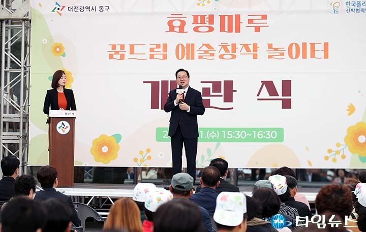 [대전타임뉴스=홍대인 기자] 이장우 대전시장이 대청호 상수원 보호구역 규제 완화를 촉구하며 대청동 개발 필요성을 강조했다. 이장우 시장은 1일 ‘효평마루 꿈드림 예술창작놀이터’ 개관식에서 “대청호 주변은 상수원 보호구역으로 묶여 지역 발전에 제약이 많았다"며 “대청동 발전을 위해서는 규제 개혁이 필요하다"고 말했다. 이어 “과거 환경부와 대통령실에 기존 건축물 증축 기준을 200㎡까지 확대해 달라고 요청했지만 150㎡까지만 허용됐다"며 “추가 완화를 추진하려 했지만 여건이 이어지지 못했다"고 설명했다. 또 “하수관로가 정비된 상황에서 대청호로 오염이 유입될 가능성은 크지 않다"며 “청소년 유스호스텔과 숙박시설 등 다양한 시설 도입도 검토할 필요가 있다"고 강조했다. 그러면서 “효평마루가 새롭게 출발한 만큼 시민들이 찾고 아이들에게 꿈을 주는 공간으로 발전하길 기대한다"며 “대전시도 동구의 사업 추진에 적극 힘을 보태겠다"고 밝혔다. 대전 동구는 이날 자연과 예술, AI 기술이 결합된 복합 문화예술 체험공간 ‘꿈드림 예술창작놀이터’를 개관하고 본격 운영에 들어갔다. 개관식에는 박희조 동구청장과 오관영 동구의회 의장 등 150여 명이 참석했으며, 참석자들은 시설을 둘러보고 체험 프로그램에 참여했다. 현장에서는 AI 기반 UV프린팅 체험과 예술작품 관람이 진행됐으며, 기술과 예술이 결합된 콘텐츠가 제공됐다. 동구는 한국폴리텍Ⅳ대학 산학협력단을 수탁자로 선정해 2월부터 운영을 준비해 왔으며, 향후 체험 프로그램과 전시를 확대할 계획이다.