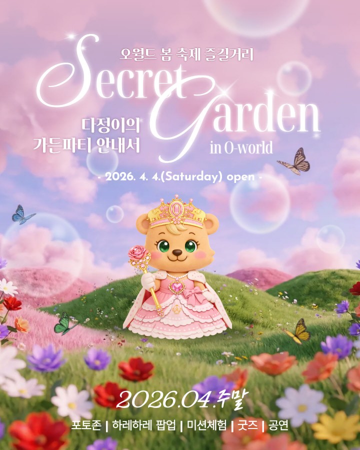홈 / 우리지역 뉴스 우리지역 뉴스 대전오월드, 4월 봄축제 ‘시크릿 가든’ 개최 홍대인 기자 기사입력 2026-04-03 22:38:14 대전 [대전타임뉴스=홍대인 기자] 대전오월드는 4월 주말 플라워랜드에서 봄축제 ‘시크릿 가든 인 오월드’를 운영한다. 축제는 4일부터 시작해 주말 오후 2시부터 8시까지 진행된다. 행사는 2030 방문객과 가족 단위 관람객을 대상으로 체류형 콘텐츠 확대를 위해 기획됐다. 관람객이 스토리에 참여하는 체험형 프로그램과 공연, 미션, 포토존 등이 운영된다. 야간개장과 연계해 벚꽃과 튤립, 조명 연출을 결합한 야간 콘텐츠도 제공된다. 홍대인 기자 <저작권자 © 타임뉴스 무단전재 및 재배포 금지> 관련 기사 대전 대덕구, 공항버스 활성화 협약…보훈병원과 체결 2026.04.27 대전 동구, 지하차도 15곳 점검…우기 침수 대응 강화 2026.04.27 한남대 이만희 교수, 공급망보안 공로 장관 표창 2026.04.27 대전 서구보건소, 포충기 21대 설치…해충 방역 강화 2026.04.27 대전 서구, 텀블러 사용 포인트…‘착한 카페’ 40곳 확대 2026.04.27 댓글 댓글 기능은 준비 중입니다.