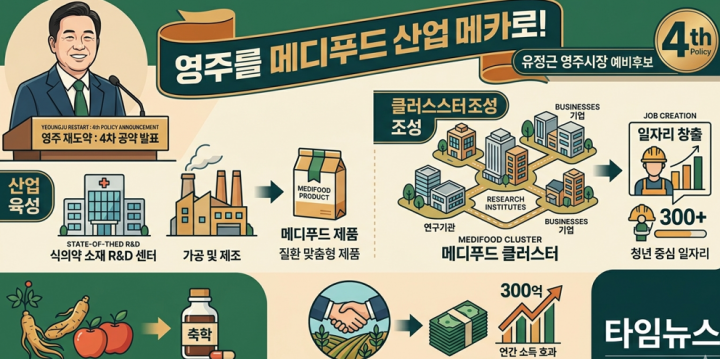 이번 공약은 풍기인삼과 사과 등 영주의 대표 농업 자원을 단순한 식품을 넘어 질환 맞춤형 식의약 소재로 고도화하는 것이 골자다.