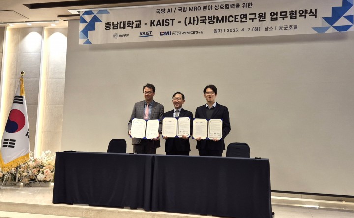 [대전타임뉴스=홍대인 기자] 충남대학교가 KAIST, 한국국방MICE연구원과 함께 국방 AI와 MRO 분야 협력 체계를 구축했다. 세 기관은 7일 공군호텔에서 업무협약을 체결했다. 이번 협약은 국방 AI 전환 가속화와 군·산·학·연 협력 체계 구축을 목표로 한다. 충남대가 추진 중인 ‘CNU AX 지역혁신 허브’ 전략의 연장선에서 마련됐다. 협약에 따라 세 기관은 국방 AI 및 MRO 핵심 기술 공동 연구개발과 정책·제도 연구를 추진한다. 인력 양성과 교육 프로그램 운영, 기술사업화와 산업 연계, 국방 전시와 국제 협력 행사도 함께 추진한다. 충남대는 인재 양성과 정책 연구를 맡고, KAIST는 첨단 기술 개발과 글로벌 연구 네트워크를 담당한다. 한국국방MICE연구원은 정책·산업 플랫폼과 협력 네트워크 구축을 맡는다. 세 기관은 대덕연구개발특구를 중심으로 국방 AI 클러스터 구축과 국제 공동연구 확대, 방산기업 연계 생태계 조성 등을 추진할 계획이다. 장호종 소장은 “연구개발과 정책, 산업, 인재 양성을 아우르는 협력 체계를 구축하겠다"고 밝혔다.