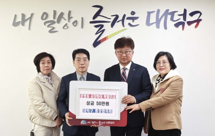 홈 / 우리지역 뉴스 우리지역 뉴스 대전 대덕구 통장협의회, 화재 피해 성금 50만원 기탁 홍대인 기자 기사입력 2026-04-08 20:50:44 대전 [대전타임뉴스=홍대인 기자] 대전 대덕구는 8일 통장협의회로부터 문평동 공장화재 피해자 지원 성금 50만원을 기탁받았다고 밝혔다. 이번 성금은 대전사회복지공동모금회 ‘대전공장화재 특별모금’을 통해 피해자의 생계 안정과 긴급 지원에 사용될 예정이다. 김기수 통장협의회 회장은 “피해를 입은 분들께 위로를 전하며 도움이 되길 바란다"고 말했다. 대덕구는 “성금이 피해 주민에게 실질적인 도움이 되도록 지원하겠다"고 밝혔다. 홍대인 기자 <저작권자 © 타임뉴스 무단전재 및 재배포 금지> 관련 기사 “10만 원 기부하면 삼겹살 2kg이 덤”... 충북, 고향사랑기부 파격 이벤트 2026.04.27 충북도-보은군-작목회 업무협약… 우량 유전자원 확산 및 개량 체계 고도화 2026.04.27 대전과기대, AI·DX 실습실 구축…53대·멀티LLM 도입 2026.04.27 대전시, ‘도로명 런닝맨’ 운영…주소·재난교육 결합 2026.04.27 대전 중구, 골목형상점가 7곳 추가…19곳 확대 2026.04.27 댓글 댓글 기능은 준비 중입니다.