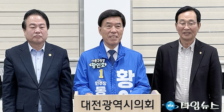 [대전타임뉴스=홍대인 기자] 황인호 더불어민주당 대전 동구청장 예비후보가 9일 동구와 충남 금산을 잇는 도로 건설과 산업단지 연계 개발 공약을 발표했다. 대전·충남 통합을 위한 전 단계 전략으로 경제협력체 구축을 제시했다. 황 예비후보는 이날 대전시의회 기자회견에서 동구와 금산군을 하나의 경제권으로 묶는 ‘상생 경제 협력체’ 구상을 밝혔다. 민주당 금산군수 후보 확정 이후 공식 회동을 통해 협력체 구성을 구체화하겠다고 했다. 핵심 사업은 동구 하소 산업단지와 금산 진산·복수면을 연결하는 5.2km 지방도 건설이다. 이를 중심으로 하소 산업단지와 금산 복수 농공단지를 연계한 산업단지를 조성하겠다는 계획이다. 황 예비후보는 “대전·충남 통합이 이뤄질 경우 대전시·동구·충남도·금산군이 공동 재정 분담으로 사업을 추진할 수 있다"며 “대전의 도시 경쟁력과 금산의 인삼·약초 산업을 결합해 동남권 성장축을 구축하겠다"고 말했다.