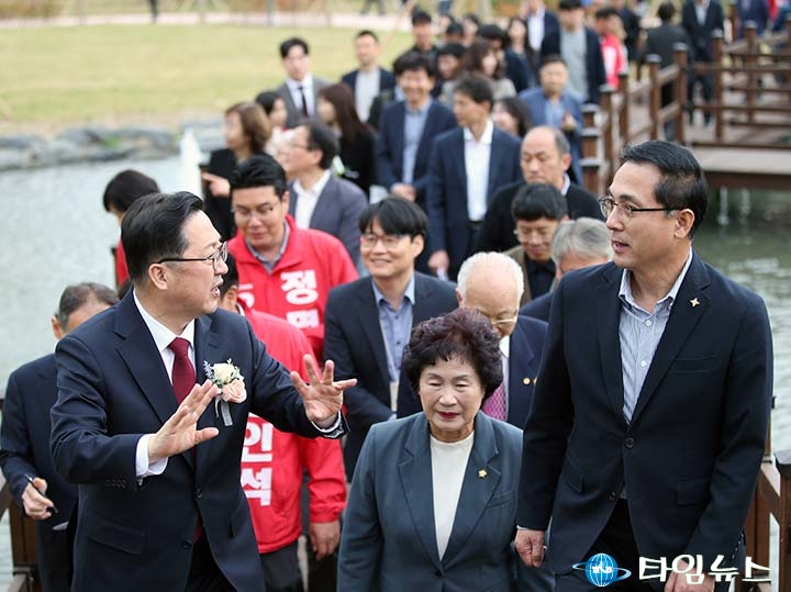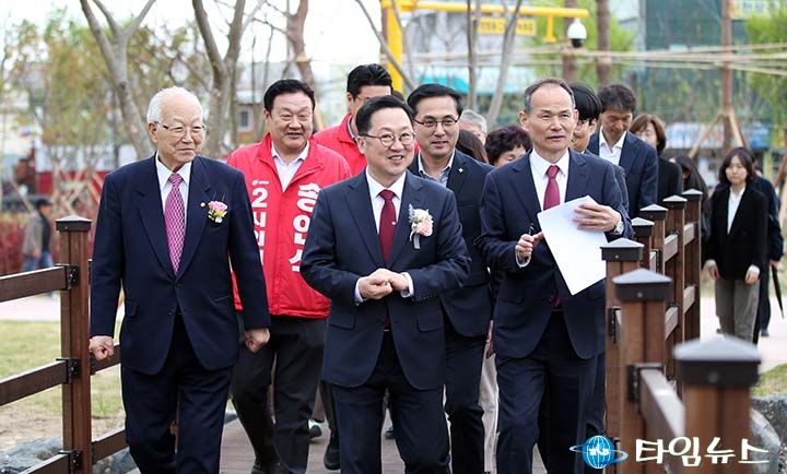 홈 / 정치 정치 이장우 대전시장, 연못·녹지 사이 걸으며 시민과 대화 홍대인 기자 기사입력 2026-04-17 17:02:16 대전 [대전타임뉴스=홍대인 기자] 이장우 대전시장이 17일 소제중앙문화공원 준공식 직후 연못과 녹지 사이 산책로를 따라 걸으며 현장을 점검했다. 이장우 시장은 사색마당과 쉼터를 오가며 동행한 관계자들과 대화를 나눴다. 산책로에서는 시민들과 마주치자 걸음을 늦추고 짧게 인사를 건네는 모습도 보였다. 공원 곳곳을 둘러보며 시설 상태를 확인한 이 시장은 준공 직후 운영 준비 상황을 점검했다. 홍대인 기자 <저작권자 © 타임뉴스 무단전재 및 재배포 금지> 관련 기사 이장우·박정현·임찬수, 늘봄 콘서트서 환담 2026.04.25 정철원 담양군수 후, 담양 변화 완성 강조…“실천으로 답하겠다” 2026.04.25 이장우 대전시장, 늘봄 콘서트서 “충청정신 계승” 강조 2026.04.25 김대중 교육감 예비후, 전남·광주 교육통합 비전 제시…정책 선거 돌입 2026.04.25 박정현 의원, 늘봄 콘서트서 “애민정신 계승” 강조 2026.04.25 댓글 댓글 기능은 준비 중입니다.