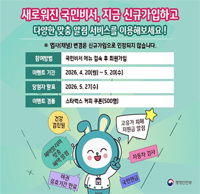[충남타임뉴스=홍대인 기자] 충남도는 고유가 피해지원금과 관련해 국민비서 ‘구삐’를 통한 알림 서비스 신청을 20일부터 안내한다고 밝혔다. 이번 서비스는 지원 대상 여부와 지급 금액, 신청 기간 등을 네이버앱과 카카오톡 등 20개 모바일 앱을 통해 사전에 확인할 수 있도록 한 것이다. 알림은 취약계층은 4월 25일부터, 일반 도민은 5월 16일부터 순차 발송되며 최대 60만원까지 지원 가능 금액을 안내한다. 다만 알림은 신청 안내에 해당하며 실제 지원금은 카드사나 주민센터 등을 통해 별도로 신청해야 한다. 충남도는 스미싱 피해 예방을 위해 공식 알림에는 URL이나 QR코드가 포함되지 않는다고 밝혔다.